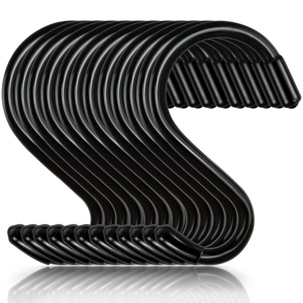 3 Inch 12 Pack Small S Hooks,Heavy Duty S Hooks for Hanging Plants,Vinyl Coated Non Slip S Hooks ,Black S Hooks Pot Rack Closet Hooks for Hanging Plants, Clothes, Kitchen Utensil, Pots, Pans, Bags