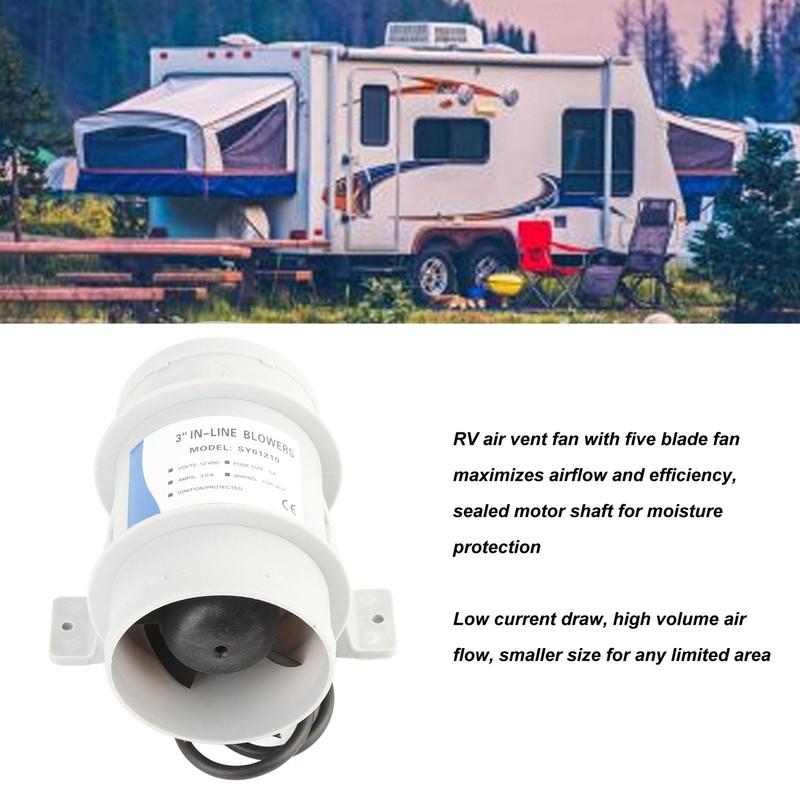 3 Inch Inline Duct Fan RV Air Vent Fan High Volume 12V Inline Blower Compact ...