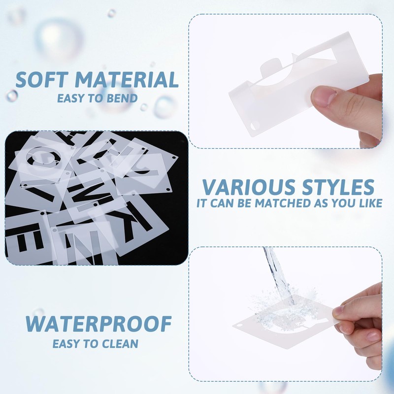 - Durable and Reusable: Letter stencils are crafted from high-quality PET plastic, these stencils are sturdy, durable, and designed to last. Laser-cut for precision, they feature smooth edges for safety and ease of use. After each project, simply clean them with soap and water, making them ready for reuse. Store them easily for future crafting.