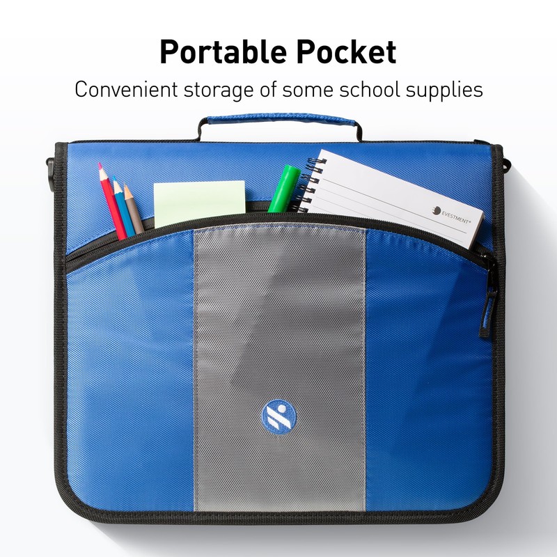 3-Inch Zipper Binder, 3 Round Rings Binder with Expanding File and Shoulder Strap, Blue