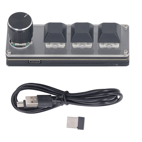 1、[Programmable Keys] The 3 key keyboard features fully programmable keys that can be set to perform complex shortcuts of all functions on a standard for Windows keyboard, enhancing user operations. 2、[Customisable Knob Design] The mini mechanical game keyboard comes with a rotary knob that can be customised to adjust volume, rotate up and down, or other functions, offering versatile usage. 3、[Dual Mode] The programmable 3 key keypad supports both wired USB and wireless 2.4G connections. The wireless design provides convenience for more efficient use. 4、[Space Saving] With its compact and portable design, the mini keyboard effectively saves desk space. You can connect both this mini keyboard and another keyboard to the same computer without interference. 5、[Broad Usability] Suitable for office work, gaming, music, media, industrial control, laboratory testing, and more, this keyboard serves as a reliable tool for designers, video editors, and many other types of users.