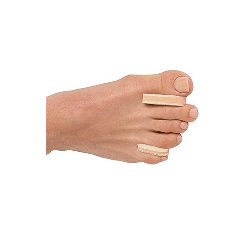 Only PediFix Toe Separators feature 3 layers of our unique materials -- outer layers of soft PolyFoam, and a middle layer of more sturdy PediSmart Foam make these soft, yet durable; comfortable, yet firm enough to keep problem toes apart. Gently divide crooked or overlapping toes to relieve between-toe corns, blisters, pinching, and cramping. Soothe and prevent irritations by absorbing pressure. Make shoes comfortable. Washable, reusable and effective for months. Size Guide: Sizing is based on width and length of desired separator, not shoe size. Most choose Large or Medium for between Big and Index Toe. Medium and Small are chosen for other toes.