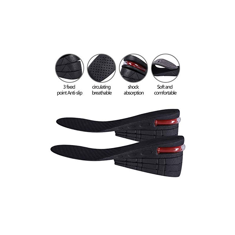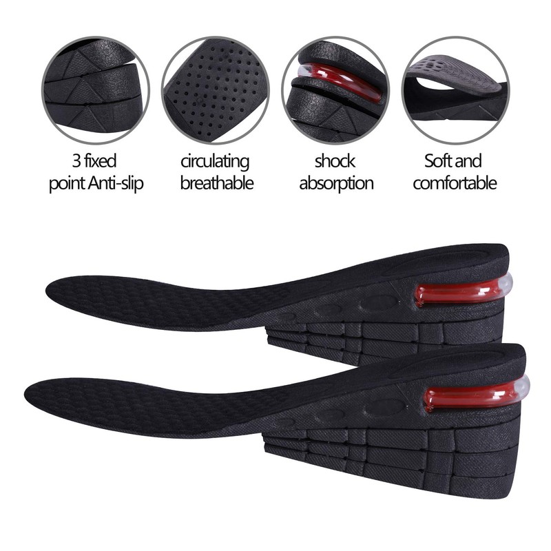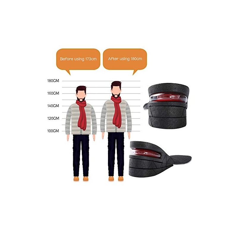 Unisex Height Hight Increase Shoe Insole for Men Women Insoles Air Cushion Heel inserts (3 Layer, 2.75" / 7cm)) **Dimension:** Height: 3 Layer, 1.18-2.75" / 3-7cm Size: EUR 225-270 (US size 5-9) (Unisex) - can be cut to size. **Material:** synthesis elastomeric, super elasticity, shock absorbent. **Feature:** **Package included:** 1 X Unisex Hight Increase Shoe Insole
