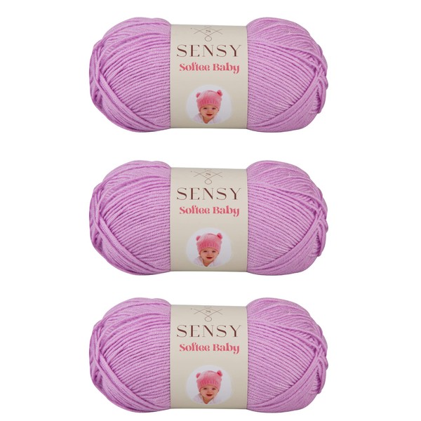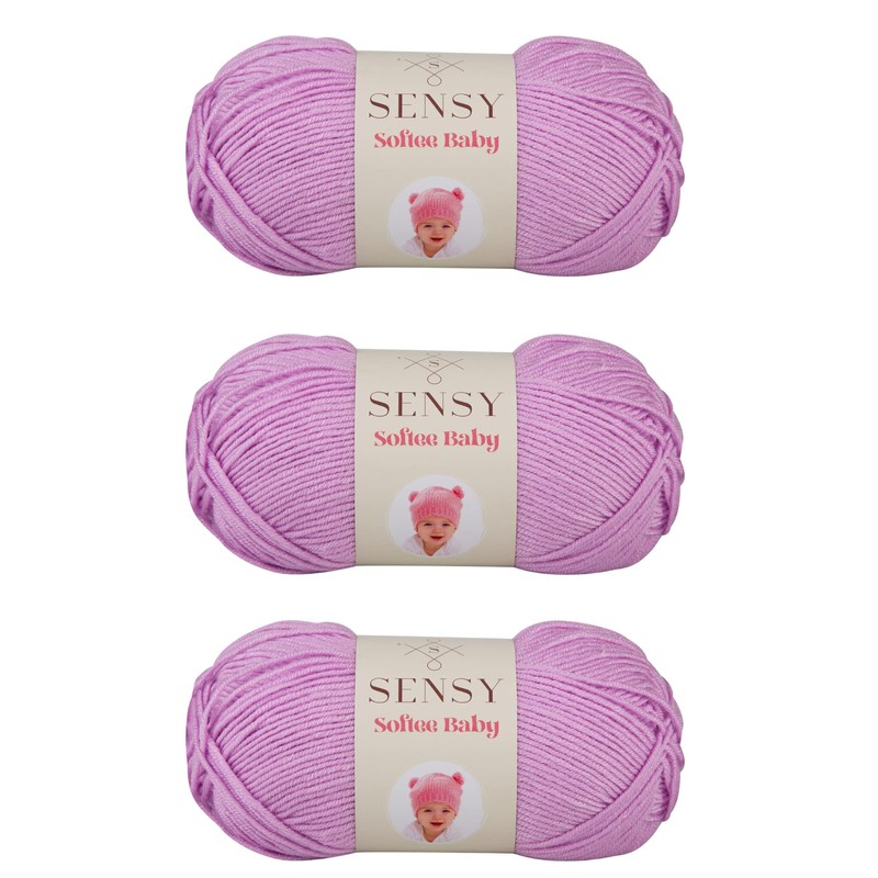 3 madejas de Sensy Softee - Hilo para bebé, 3.5 onzas, 275 yardas, calibre 3 luz (Lila)