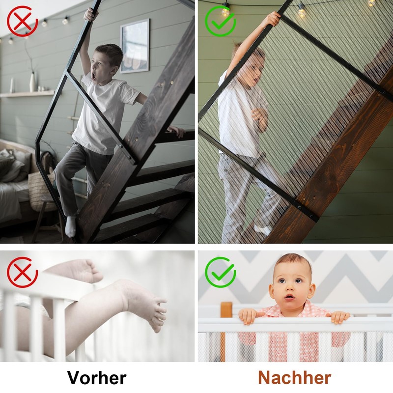 - Protection for children and animals: Our safety net prevents your baby from sticking their head through the railing or dropping toys between the railings. Create a safe and comfortable playing environment for your children and animals.