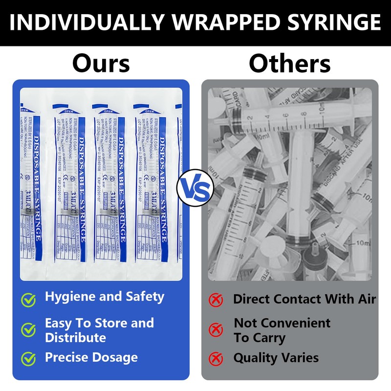 - Independent packaging: plastic syringe sterile packaging are all individually packed, clean and hygienic and easy to carry and store. Without needle syringe is sterilised, non-toxic and pyrogen-free. Let it use with confidence. Note: Not for medical purposes!