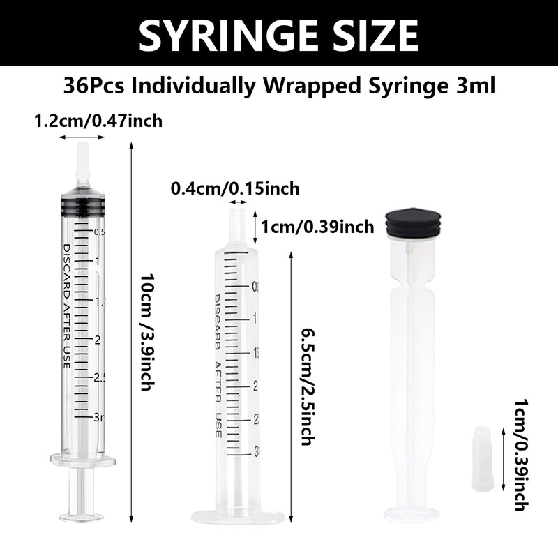 - Package includes: This pack contains 36 x syringes with lids and 36 x white caps. The top of the liquid syringe feed syringe is designed for the catheter tip and the white caps can help you keep the syringe clean.