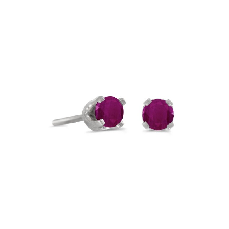 3 mm Petite Round Genuine Ruby Stud Earrings in 14k White Gold