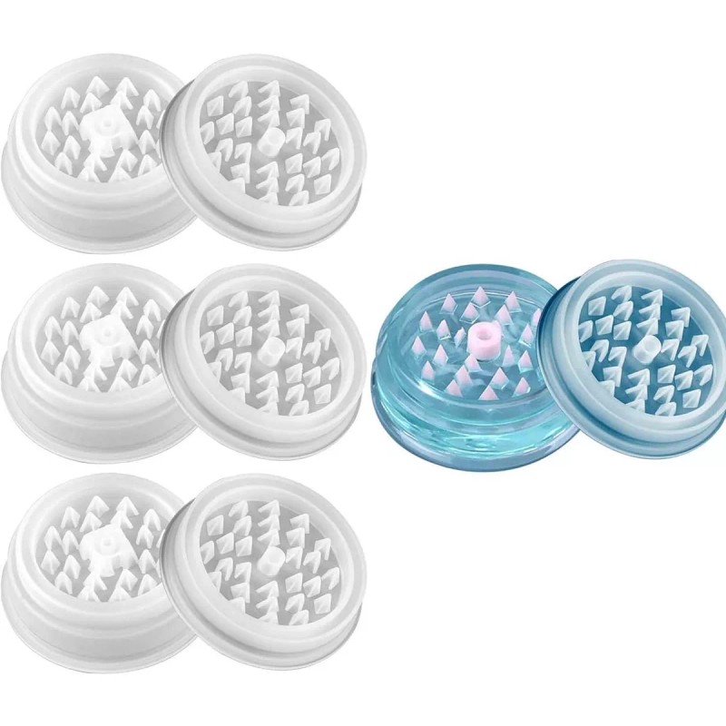 este paquete tiene 3 pares de moldes de molienda que contienen 6 productos. Un par de moldes contiene 2 piezas de moldes, cada molde está hecho de la parte superior y la parte inferior. Puedes añadir pigmento o flores secas a varios colores de molinillos de hierbas o trituradoras de tabaco.