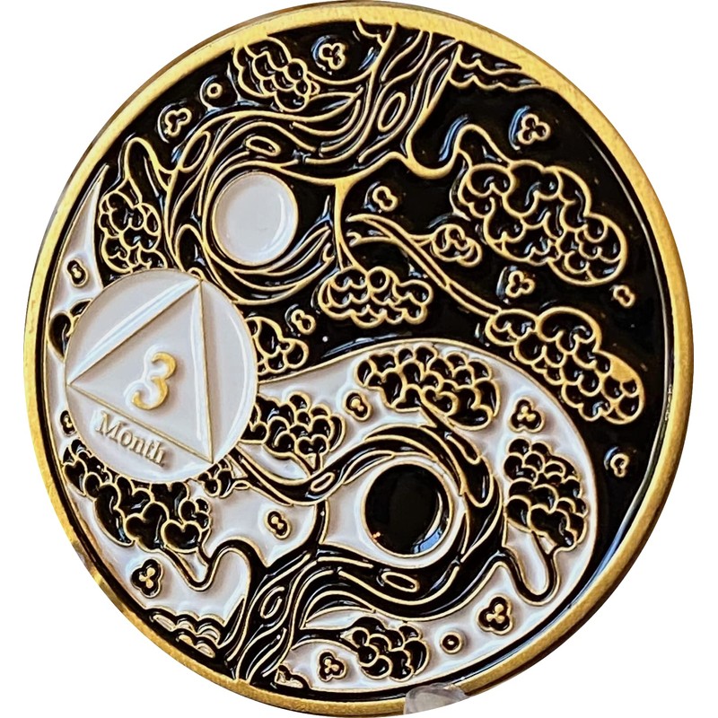 3 Month AA Medallion Sakura Tree Cherry Blossom Ying Yang Black and White Serenity Prayer Medallion