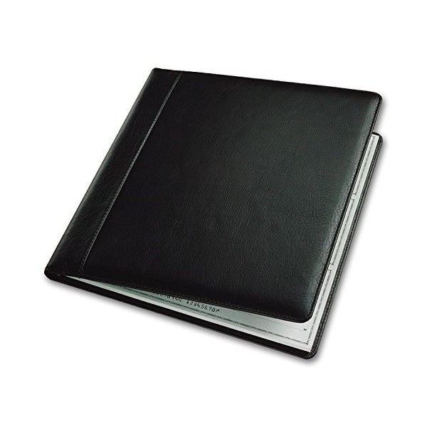- Durable, luxurious black leather cover Holds 54031N Checks that are bound on the left side in tablet form Additional registers (128051N) available bound at the top in tablet form