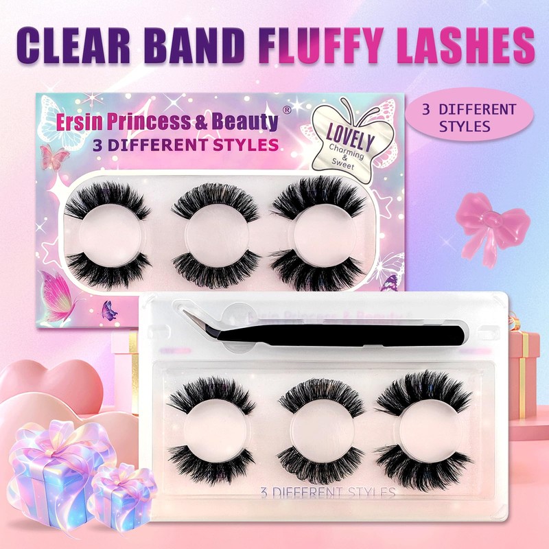 - 3 Stile gemischt D Curl Wimpern Set: 3 Stile gemischt Clear Band D Curl Russische Falsche Wimpern mit Pinzette, sie sind lockiger als herkömmliche künstliche Wimpern und verleihen Ihnen attraktivere Augen. Außerdem spart es mehr Zeit und Geld als Wimpernverlängerungen im Salon.