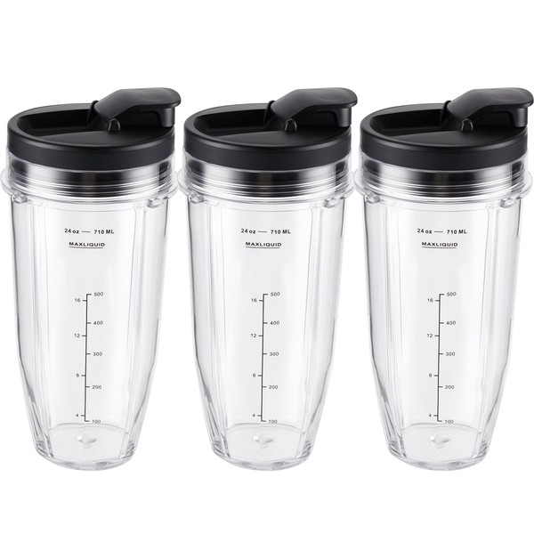 Ninja Blender Cups Replacement 24oz – Compatible with Ninja BN401, BL450, BL456, BL480, BL2012, BN751, BN801, SS101, SS151 – 3 Pack with To-Go Lids