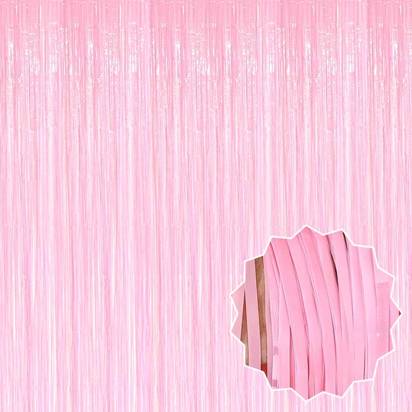 3 Pack 3.28x6.6 Ft Macaron Pink Foil Fringe Curtains Backdrop, Metallic Tinsel Streamers Curtains Backdrop for Photo Booth, Birthday, Graduation, Mother's Day, Disco, Celebration Party Decoration