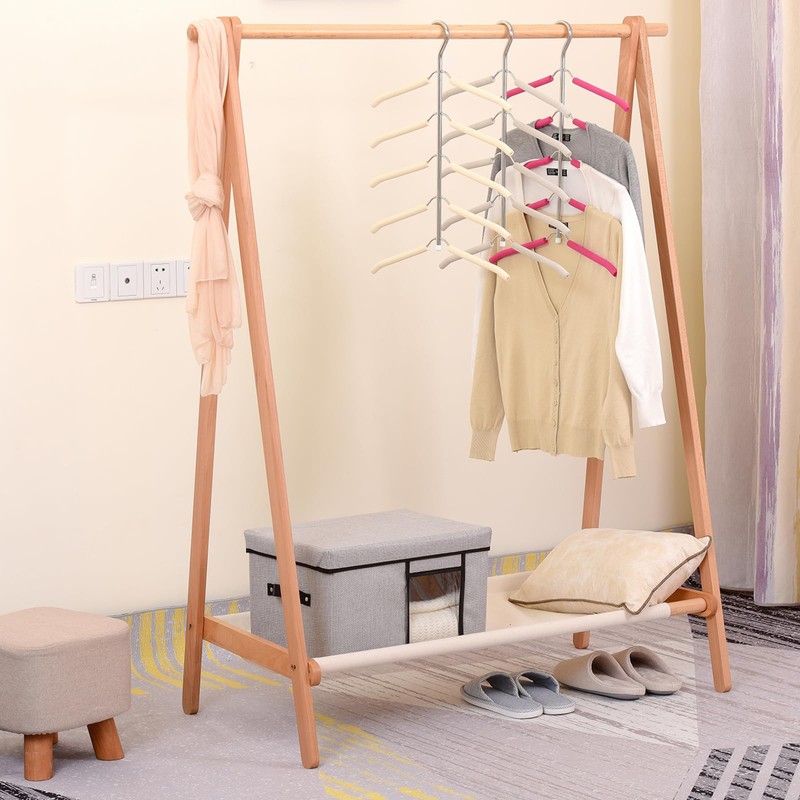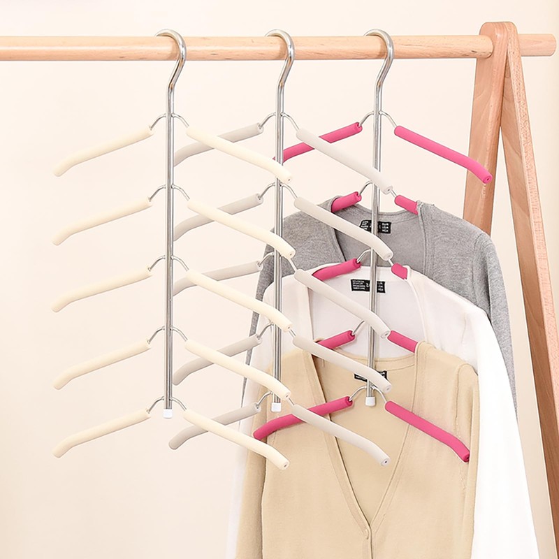 Our multi-layer clothes rack is made of premium quality stainless steel and EVA sponge. It is suitable for hanging jackets, coats, sweaters, shirt, T-shirt, ect. It is a great sapce saver to organize your closet.