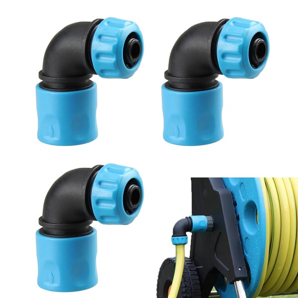 3 Pack 90 Degree Hose Elbow Connector - 1/2 Inch ABS PP TPR Plastic Garden Irrigation Fitting - Compatible with Gardena System, Car Wash & Watering Pipes (Blue)