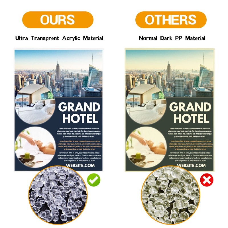 • MATERIAL: Immerse yourself in quality with our acrylic sign holder 8.5 x 11, crafted from premium beech wood for the base and featuring a high transparency acrylic panel. Experience the sophistication of double-sided display with unmatched clarity, allowing your content to shine with brilliance and professionalism.
