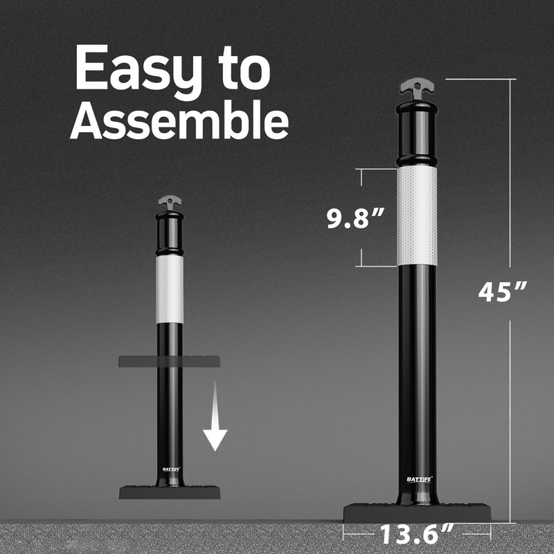 • Suitable for many occasions: These 45 inch delineation posts serve a variety of functions, such as being suitable for solving parking problems in apartment complexes. Or to demarcate safe areas in parking lots, driveways, construction sites and other scenarios