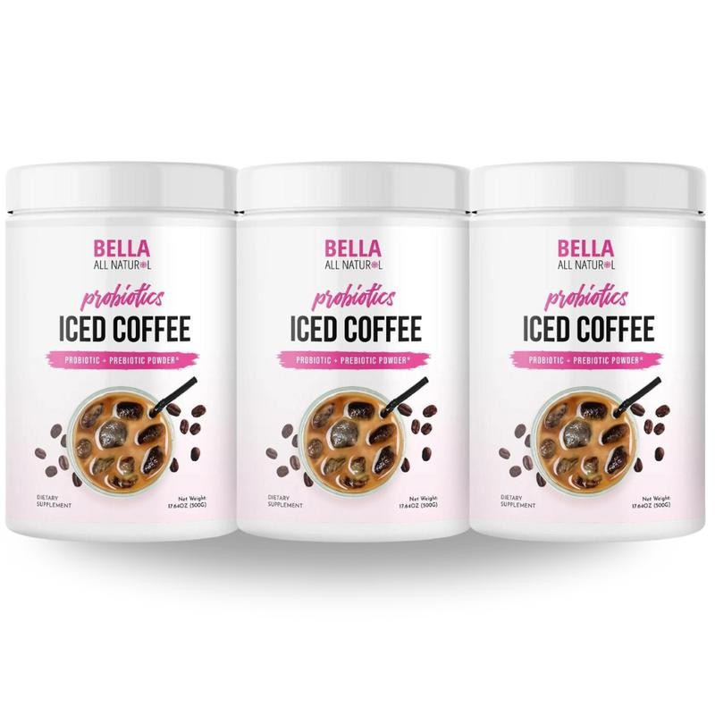 Includes: 3 Pack Bella All Natural Probiotics Iced Coffee.