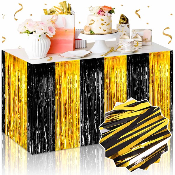 • 3 Pack Black and Gold Tinsel Table Skirts