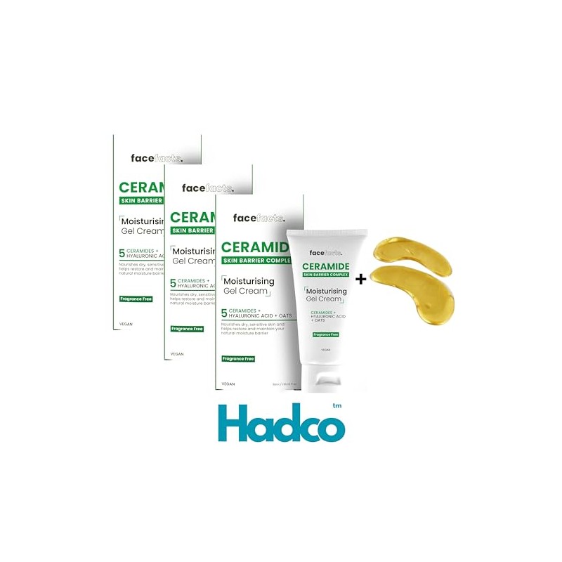 3 Pack Bundle - Face Facts Ceramide Moisturising Gel Cream. Soothes + Strengthens Skin | 3x 50ml. A Hadco Bundle With Our Gold Collagen Eye Pack Included.