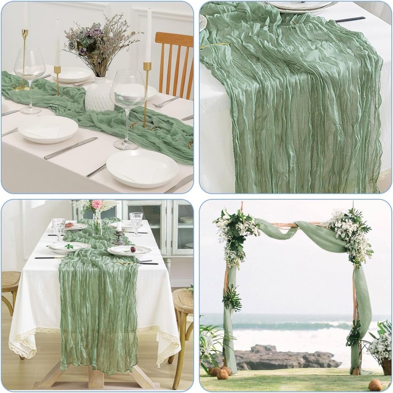 3 Pack Cheesecloth Table Runner, Table Decor Romantic Wedding Runner Gauze Table Runner for Baby Shower Bridal Shower Wedding Birthday Party Table Decor (Green)