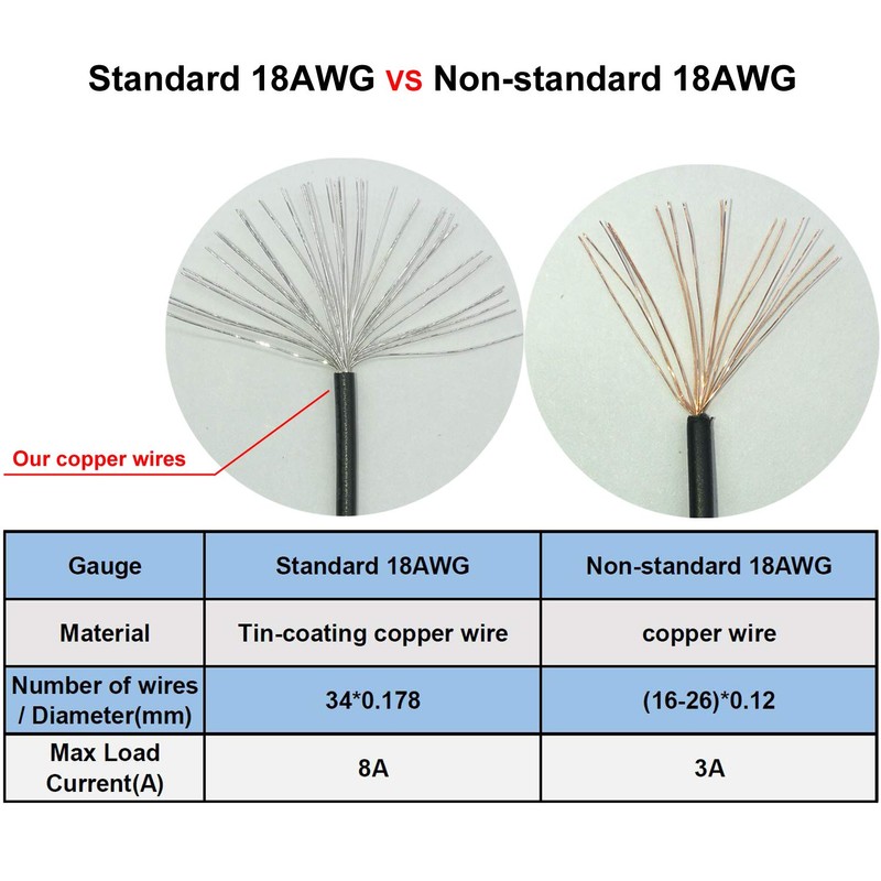 - 『Parameter』Length(including connectors): 9.5-inch(24cm)(approx), Gauge: 1007-18AWG(standard tin-coating copper wire), Rated power: 200W, Quantity: 3pcs, Self-adhesive tape*1pcs;