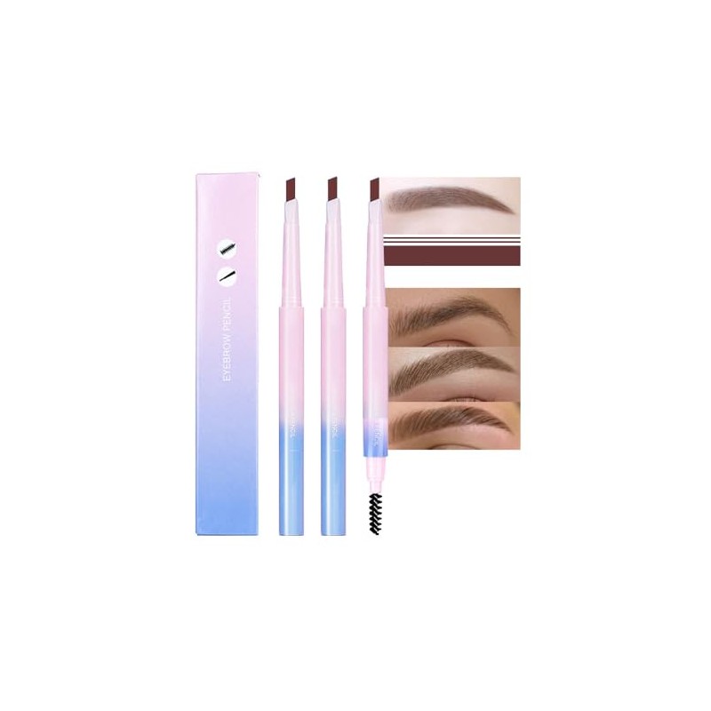 3-Pack Dual-Sided Retractable Eyebrow Pencil with Brow Brush, Triangular Tip, 3D Brow Defining, Fine Tip, Shapes, Long-Lasting Brow Sticks, Contours, Combs Makeup Kit, Matte Finish (Brown)