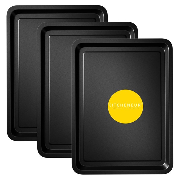 3-Pack - Essentials Baking Tray Set 32cm -Non-Stick Tin, Multi-Pack Set Oven Pan - Dishwasher Safe and Easy Clean by KITCHENEUR®