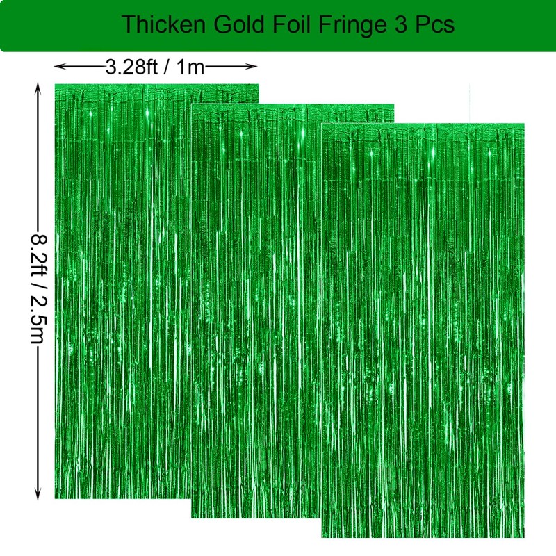 3 Pack Green Thicken Glittering Tinsel Foil Fringe Curtain Party Decorations ...