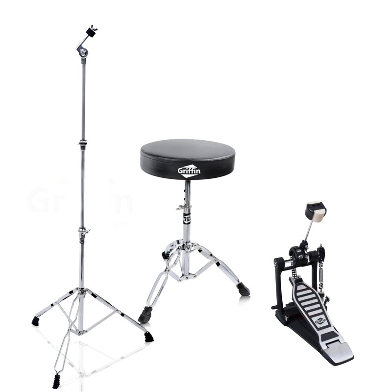 Griffin 3 Piece Drum Hardware Package with Cymbal Stand