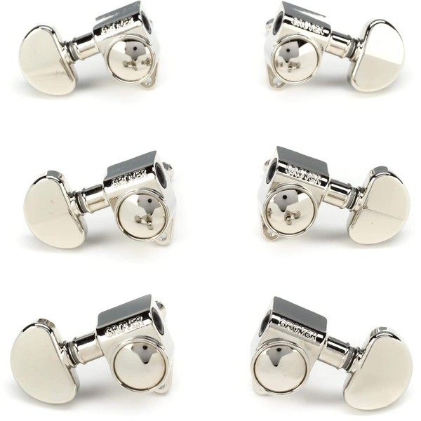 - Guitar Tuning Machine Heads (3 + 3 Configuration) with 14:1 Gear Ratio, Enclosed and Permanently Lubricated - Set of 6, Nickel
