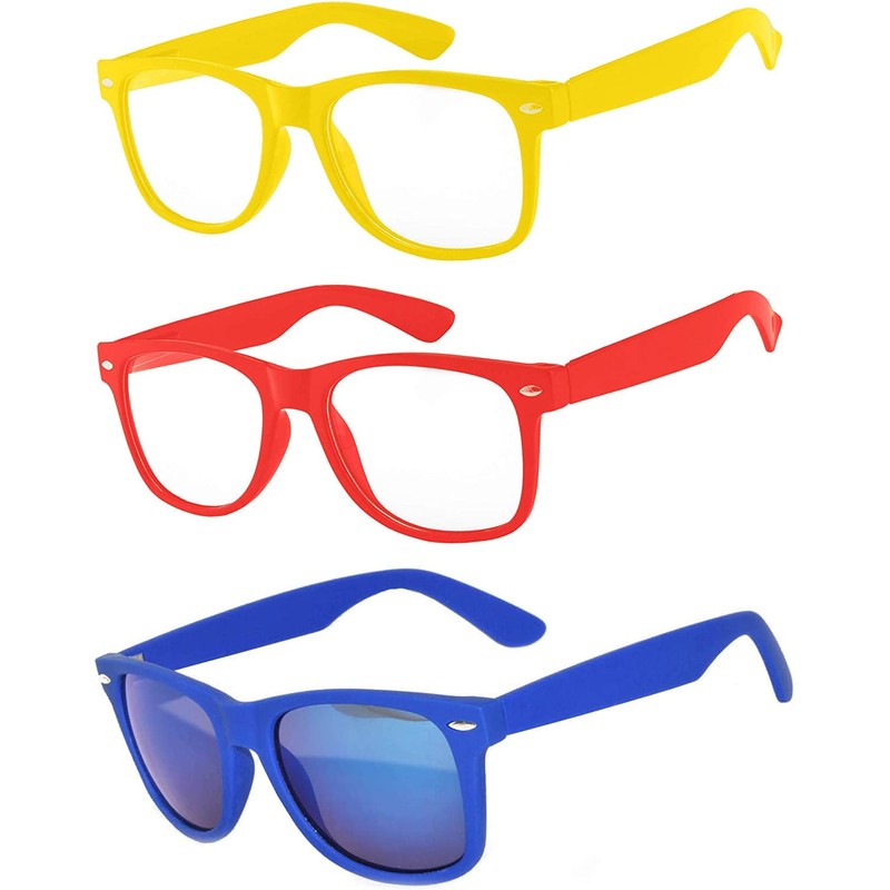 - GREAT VALUE PACK: With this OWL's 3 Pair Sunglasses Kids, you get three pairs of sunglasses at a great value. Two pairs feature clear lenses, while the other pair features a reflective mirror lens. Your child can choose the lens that suits their mood and outfit, making them a versatile accessory.