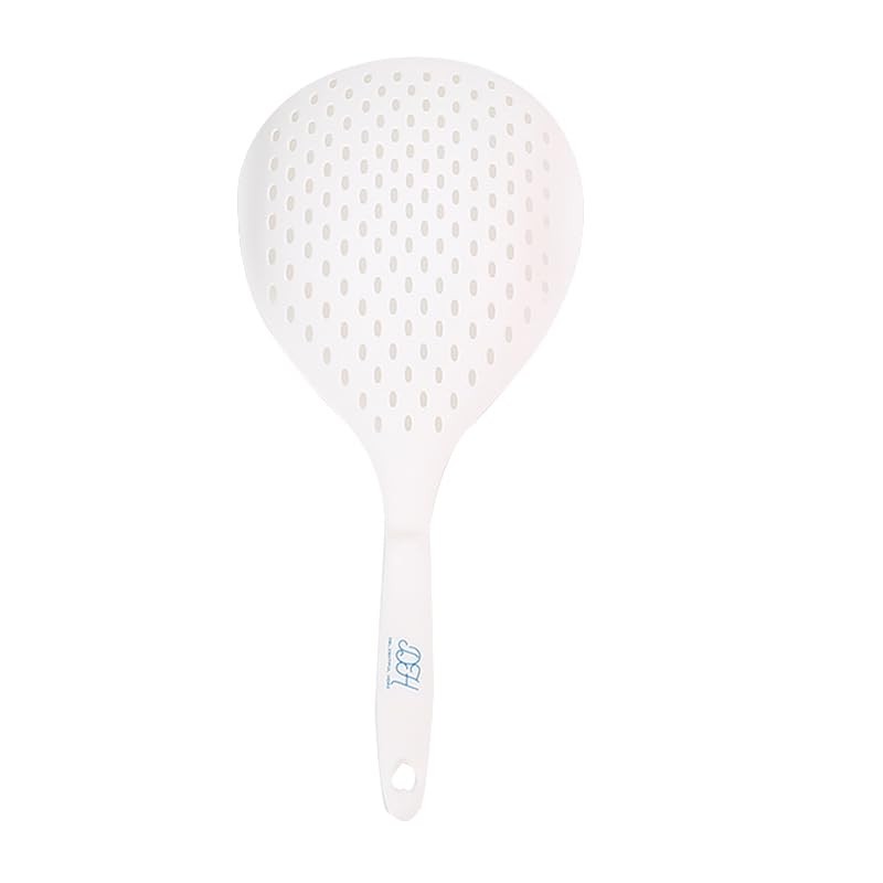 • Efficient Drainage with Large Capacity Scoop: The generously sized scoop is designed to hold substantial portions, making it easier to strain large batches of food at once. The precision-drilled mesh holes are strategically placed to allow for quick and thorough drainage, preventing food from slipping through while ensuring all excess liquids are effectively removed. Whether you're draining pasta, rinsing fresh produce, or skimming off fat from broths, this utensil speeds up the process, saving you time in the kitchen.