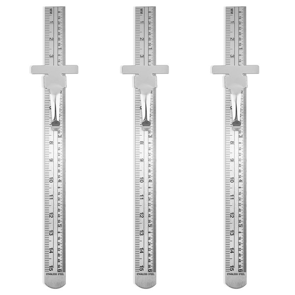 3 Pack Machinist Ruler 6 Inch Pocket Ruler Stainless Steel Metric Ruler Set M...