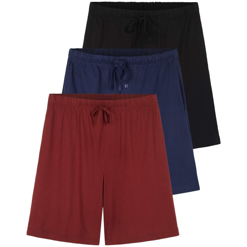 3 Pack: Men's Cotton Pajama Shorts Jersey Knit Sleep Bottoms Sleepwear PJ Pijama Para Hombres Drawstring Waistband Pockets Modal Soft Button Fly Essentials Lounge House Wear Comfy PJ- Set 10, XXL