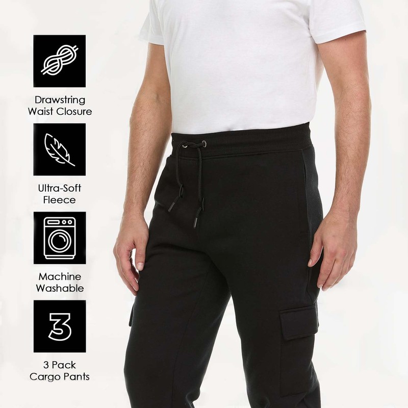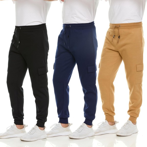 3 Pack: Men's Fleece Cargo Jogger Active Athletic Sweatpants with Pockets