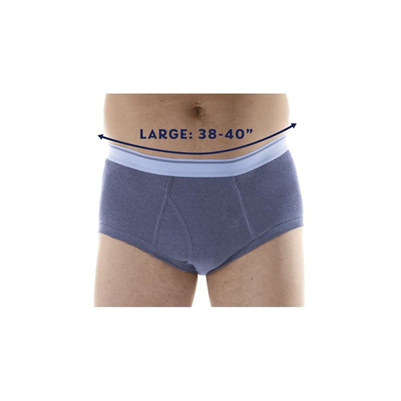 3-Pack Men's Gray Classic Regular Absorbency Washable Reusable Incontinence Briefs Large (Waist 38-40)
