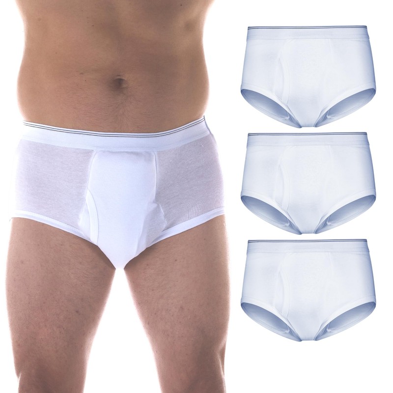3-Pack Men's Maximum Absorbency Washable Reusable Bladder Control Briefs 600 ml White Large (Waist 38-40)