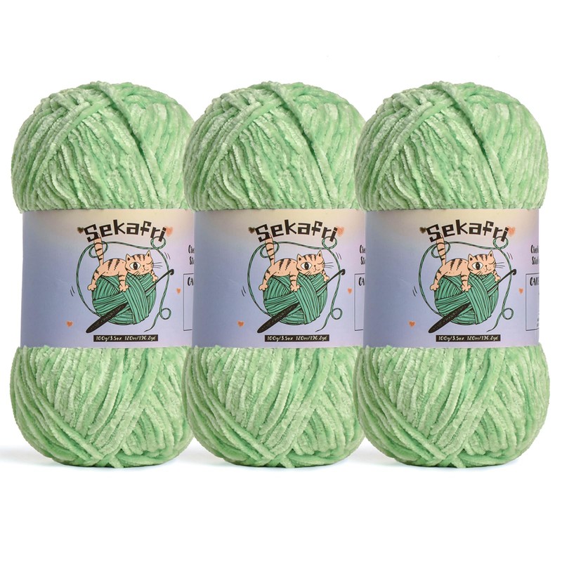 3 Pack of 300g (590yds) Fuzzy Chenille Yarn for Crocheting,Fluffy Amigurumi Crochet Yarn for DIY Craft/Hat/Clothes, Soft Velvet Baby Blanket Yarns(3 Light Green)