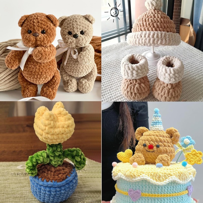 - [Creative Knitting] This chenille yarn is easy to work with and suitable for everyone. Perfect for baby-related items and your amigurumi toys, this yarn allows you to knit blankets, dolls, cushions, pillows, scarves, hats and other beautiful crafts.