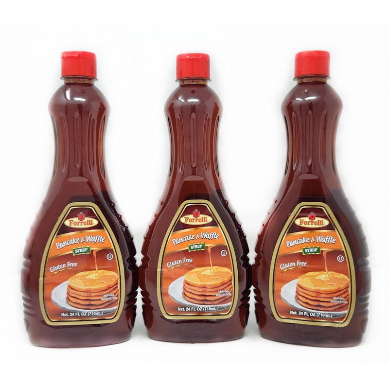 - PACK CONTENTS: Set of three 24-ounce bottles of Forrelli pancake and waffle syrup, perfect for family use or bulk buying