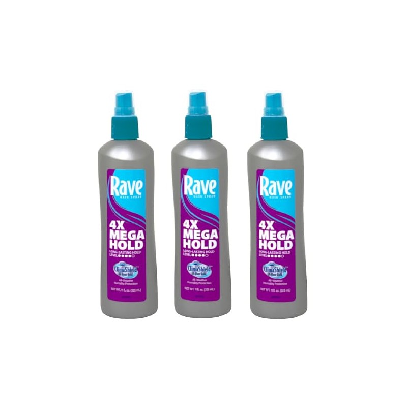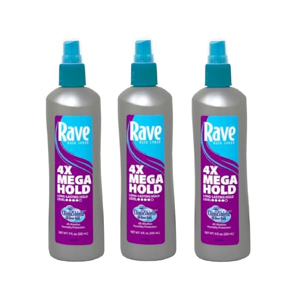 3 pack of Rave 4x Mega Unscented Pump Hairspray, 11 fl oz
