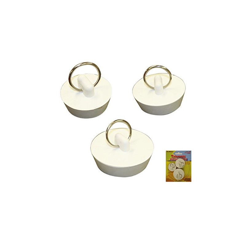 New 3 PCS Fit All Rubber Drain Stopper Plugs Large & Small Bathtub Sink Multiple Uses ! Drain stoppers come in 3 different sizes and fit most drains. Made with durable rubber and has a pull chain for easy removal. Comes packaged on a blister card with hanging hole.