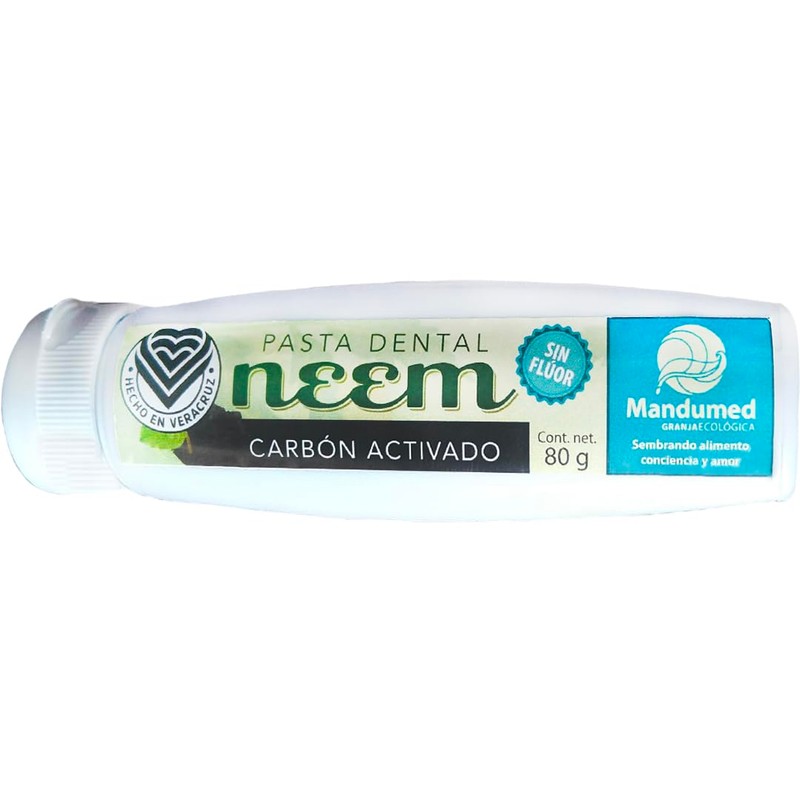 3-Pack Pasta Dental Sin Flúor de Neem con Carbón Activado, 80 G. Pasta de dientes libre de flúor con Neem ideal para viajar. Mandumed Granja Ecológica