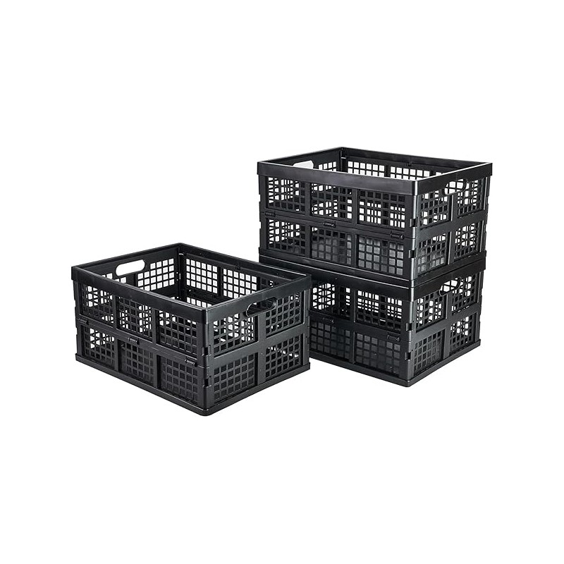 3-Pack Plastic Collapsible Storage Crates-30L,Foldable Plastic Crates for Storage (Black)