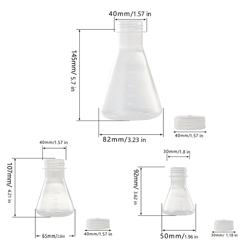 - 【Pack of 3】Contain 50ml+100ml+250ml Narrow Mouth Erlemeyer Flask with cap, which are sterile & can seal the liquid in the flasks perfectly for experiment.
