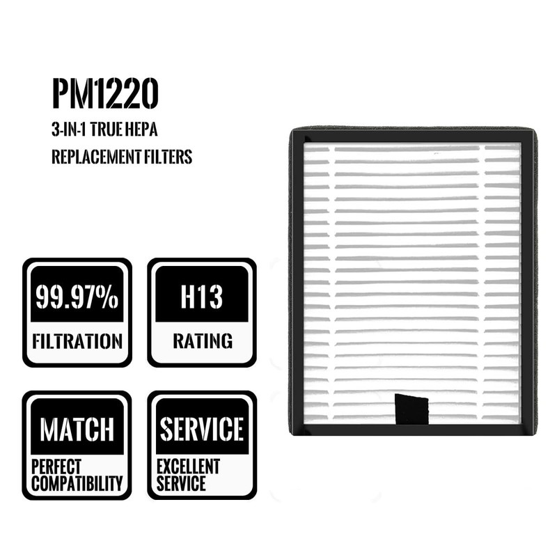 3-Pack PM1220 Replacement Filter High-Efficiency 3-in-1 True HEPA Replacement Filter, Compatible with MOOKA and KOIOS PM1220 Air Purifiers, H13 HEPA + Activated Carbon Filter