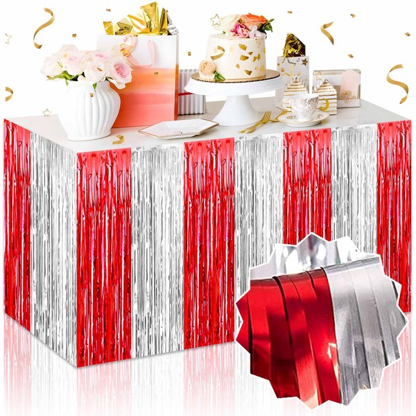 - 3 Pack Red and Silver Tinsel Table Skirts