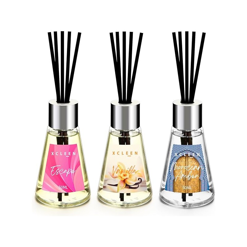 3 Pack Reed Diffuser, Scented Oil Diffuser with 15 Sticks, Escape/Vanilla/Moroccan Amber, Air Freshener for Bathroom & Office, Holiday Home Fragrance, Gift idea, Each 1.7Fl Oz, Total 5.1Oz